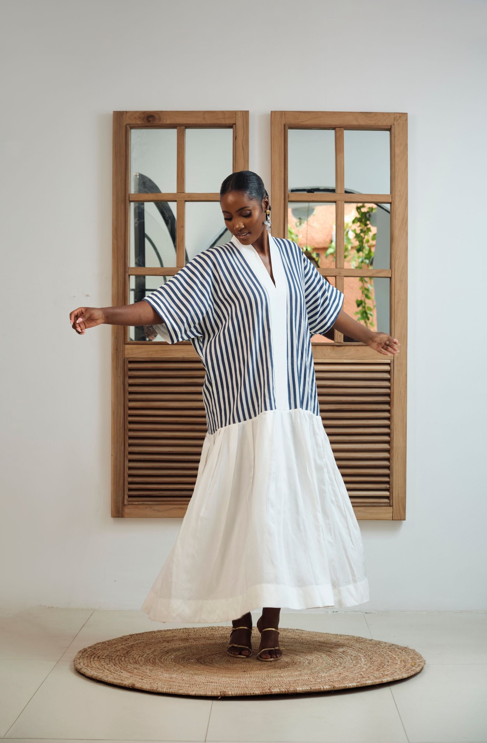 Republic of Ruru Dani Kaftan (Dark Blue Stripe)
