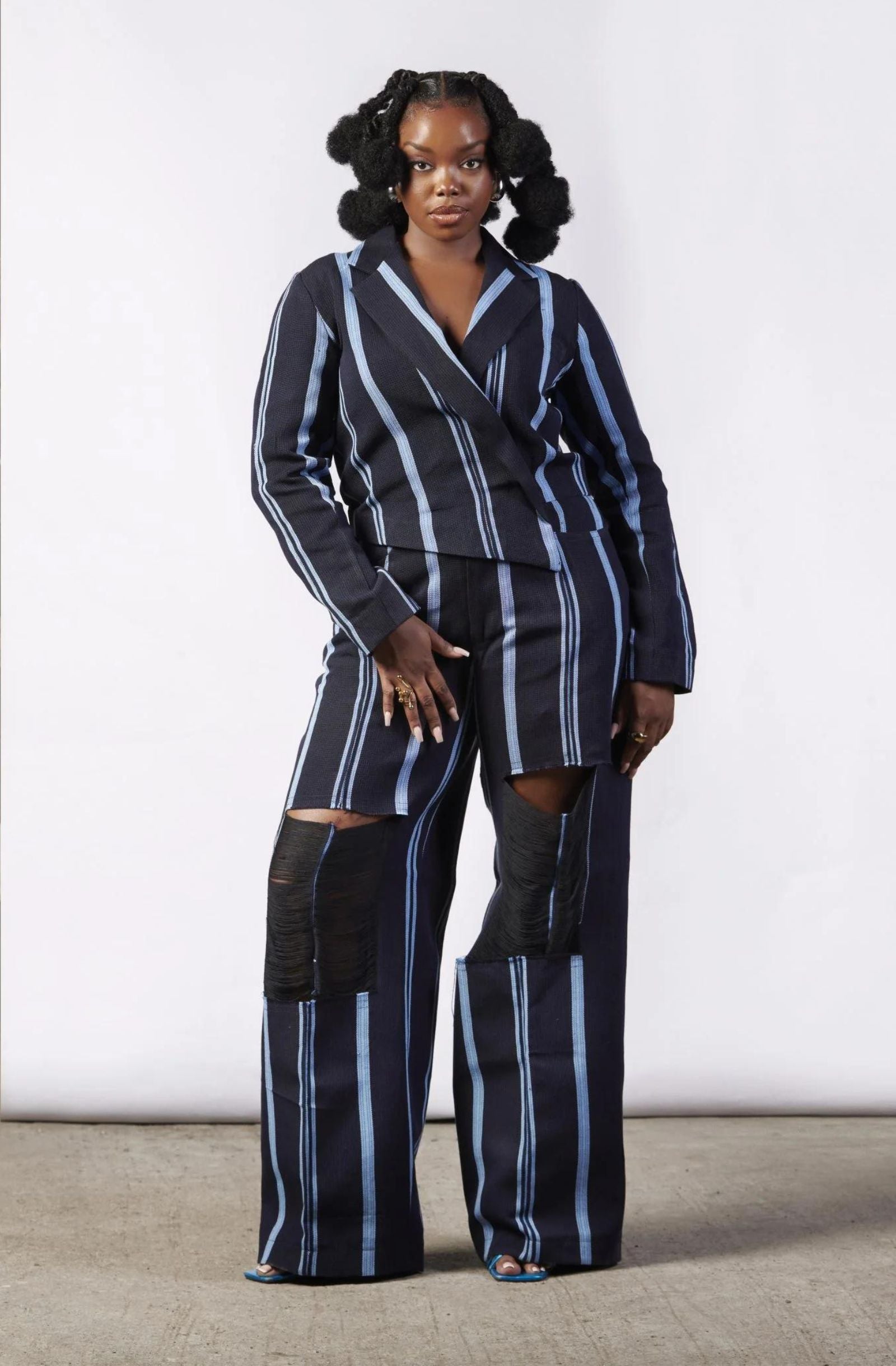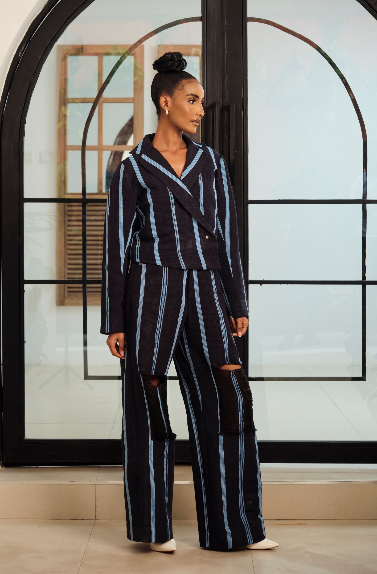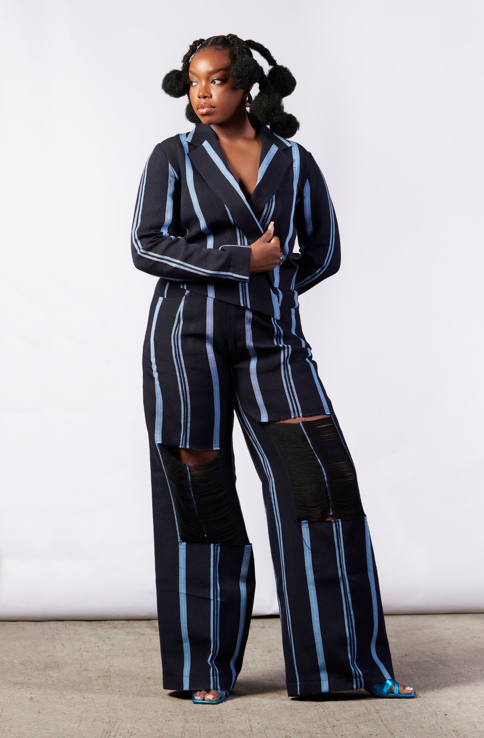 Our distinctive Ripped Aso oke Pants are carefully crafted from premium Aso oke fabric. These pants showcase a stylish blend of cultural heritage and modern fashion. The intentionally distressed detailing adds a bold and edgy touch, making a striking statement. Perfect for those who appreciate the artistry of traditional textiles while embracing a fashion-forward aesthetic.