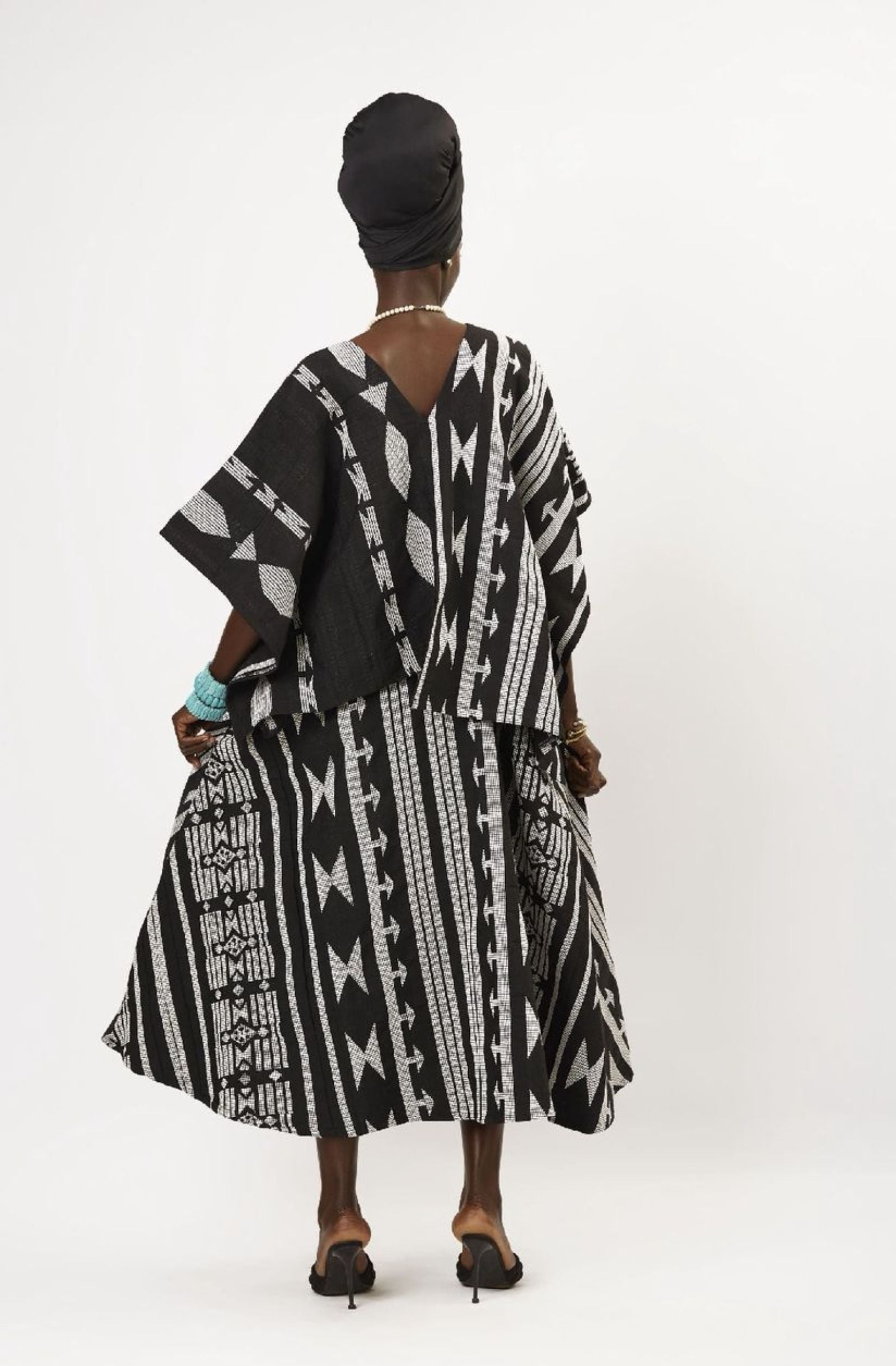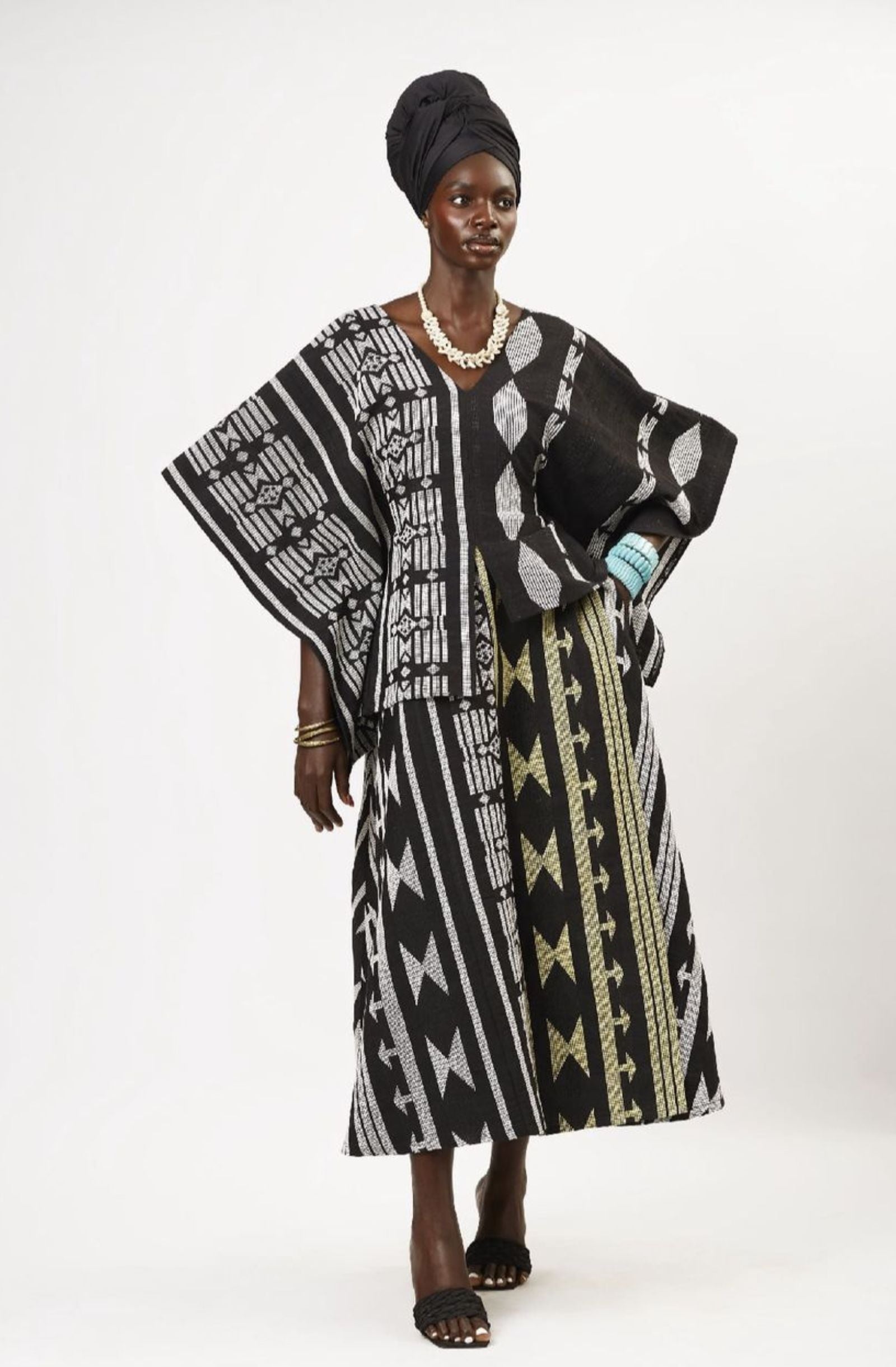 The Meena Monochrome Black is a fusion of structure and movement, redefining modern elegance. Its asymmetrical, free-flowing top falls with effortless fluidity, while an inner belt cinches the waist to create a sculpted, flattering silhouette. The bottom layer moves harmoniously with the body, enhanced by a bold yellow layer that adds a radiant pop of color. Crafted with signature handwoven detailing, this rendition is both bold and timeless a versatile masterpiece for every occasion.