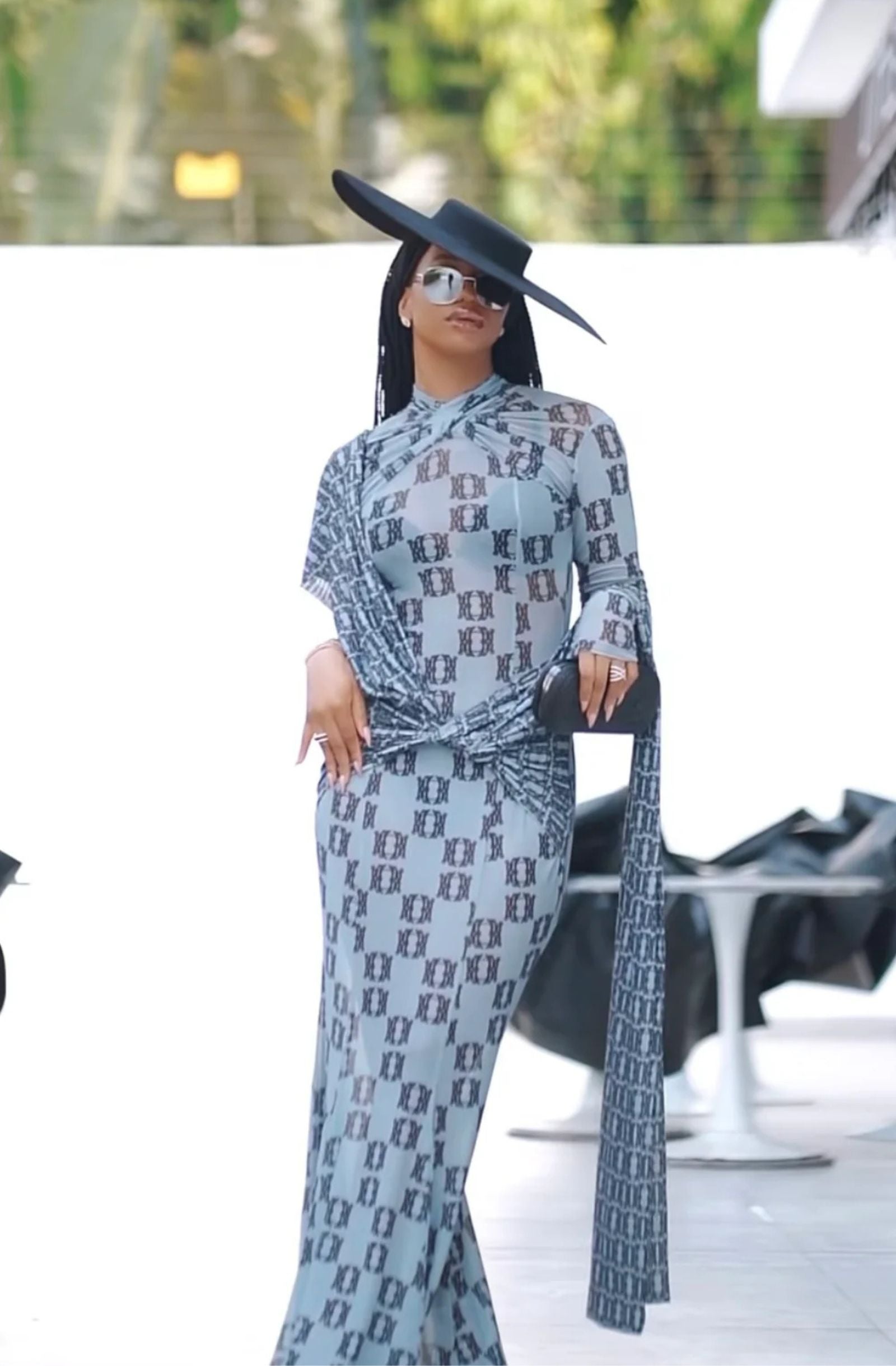 Expertly designed with mesh A-line fabric, this AMARYLLIS DRESS features a flattering wrap detail and anagram print. Comfortable and stylish, this dress is perfect for any occasion.