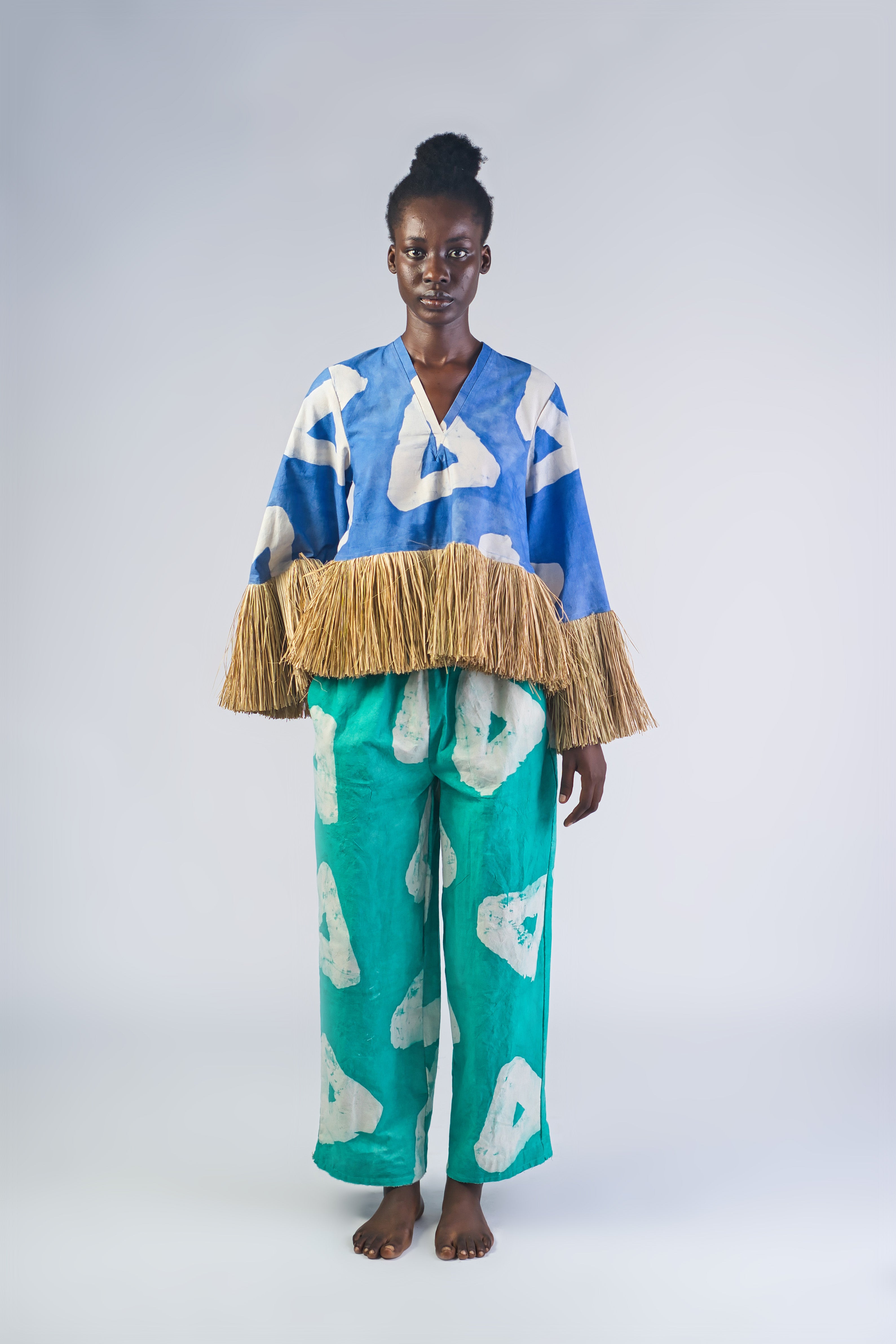 Elevate your style with our stunning V-Neck Batik Top, expertly crafted with intricate batik prints and adorned with rustic raffia trims. This unique piece combines traditional techniques with modern flair, perfect for adding a touch of bohemian chic to any outfit.