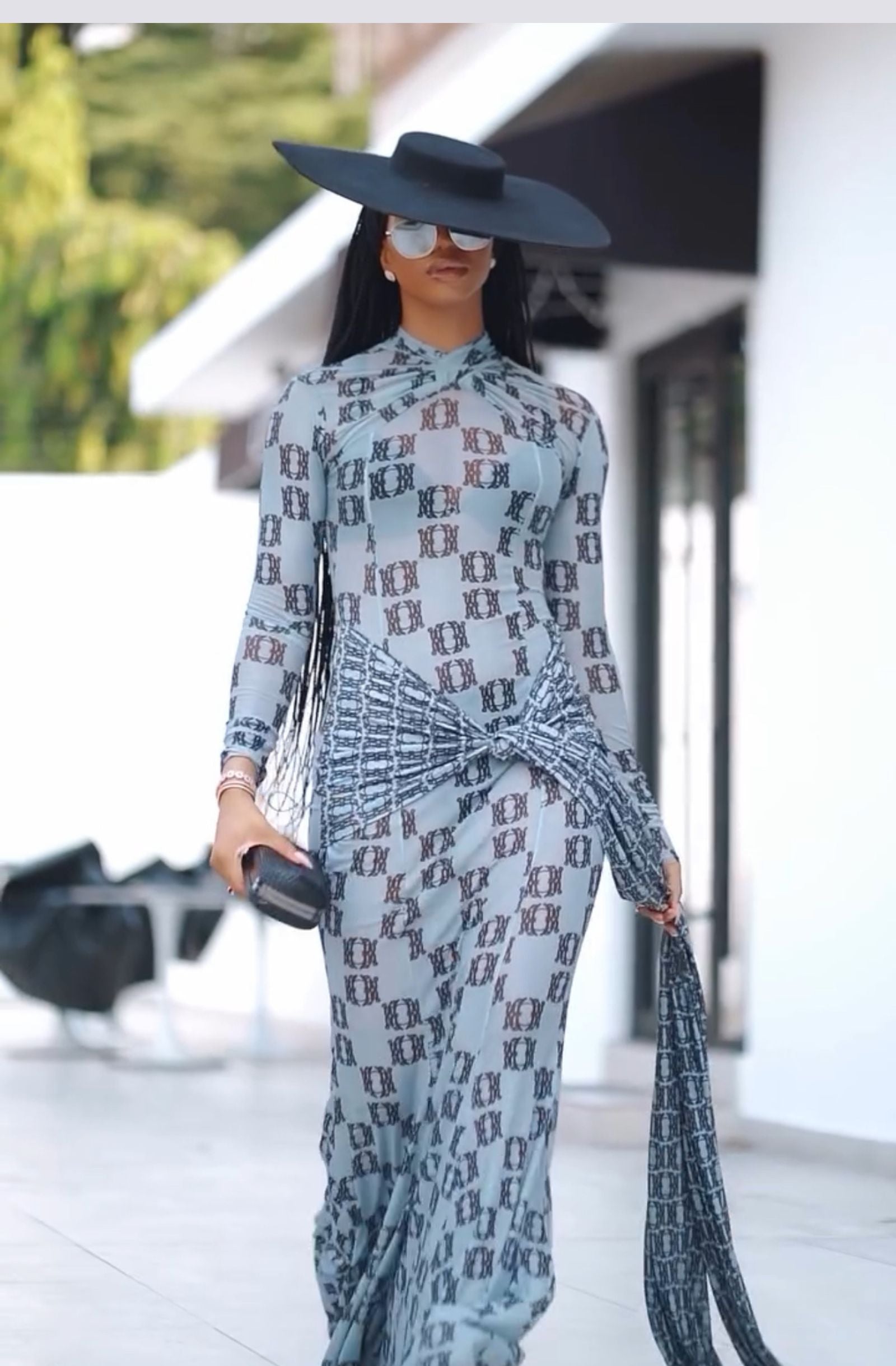 Expertly designed with mesh A-line fabric, this AMARYLLIS DRESS features a flattering wrap detail and anagram print. Comfortable and stylish, this dress is perfect for any occasion.